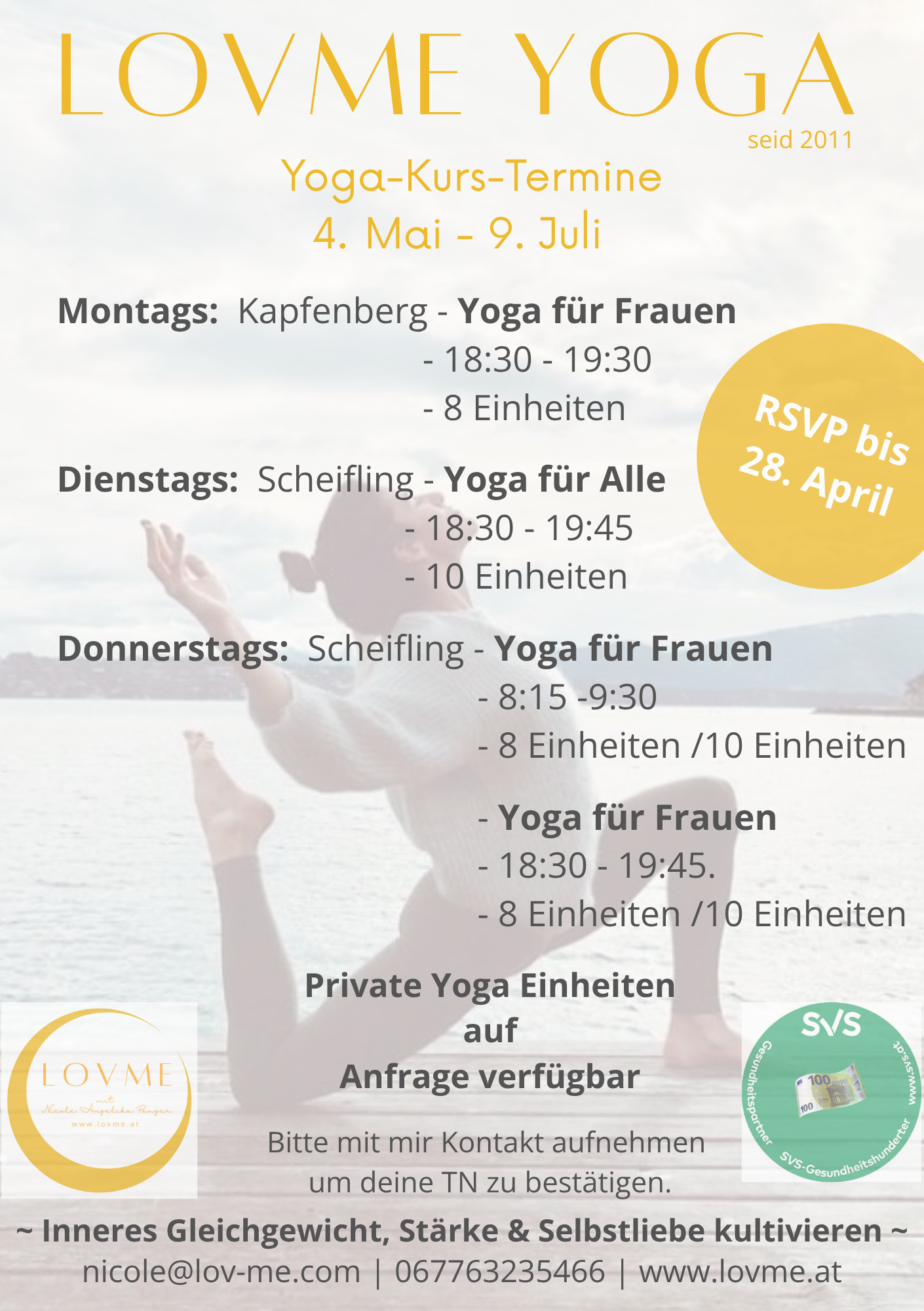 Yoga-Kurs-Termine von 4. Mai bis 9. Juli mit Nicole Angelika Panzer -